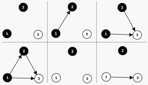 The rules of the game is simple. Players must put some arrows between some pairs of different pieces in such a way that for each arrow, the number in the piece it starts from is less than the number of the piece it ends at. Also, two different pieces can only be connected by at most one arrow. After that the players must choose the color ( $ 0 $ or $ 1 $ ) for each of the unpainted pieces. The score of a valid way of putting the arrows and coloring pieces is defined as the number of paths of pieces of alternating colors. For example, $ [1 \to 0 \to 1 \to 0] $ , $ [0 \to 1 \to 0 \to 1] $ , $ [1] $ , $ [0] $ are valid paths and will be counted. You can only travel from piece $ x $ to piece $ y $ if and only if there is an arrow from $ x $ to $ y $ .
