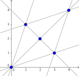 $S$ 中的点和所有可能的直线 $l$ 如下图所示。