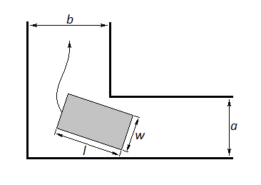 In the second example it is possible to drag the coffin through the corridor thanks to rotating wheels: firstly, drag it forward by one side while it will not be hampered by the wall, then move it forward by adjacent side perpendicularly to the initial movement direction (remember — arbitrary moves and rotations of the coffin are possible).