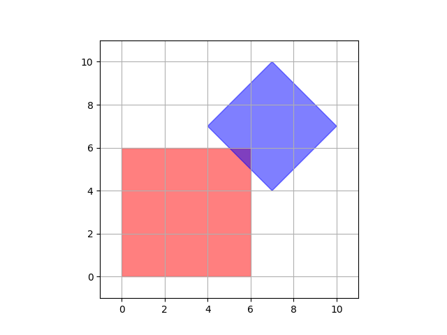 You are given two squares, one with sides parallel to the coordinate axes, and another one with sides at 45 degrees to the coordinate axes. Find whether the two squares intersect.