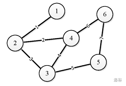 样例输入中的捆绑方式如下图所示(图中边上所标数字为绳子的编号):
