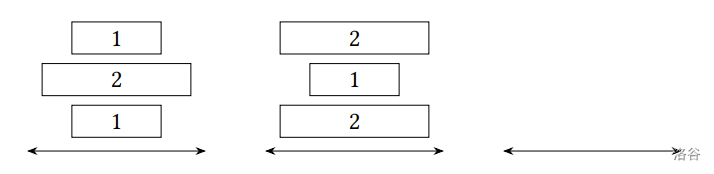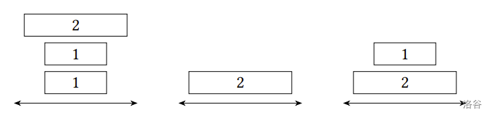 接着再将最右边的两个煎饼分别铲到第 $1$, $2$ 叠,便完成了阿麦预期的摆设方式: