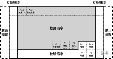 - 一个长度码字,表示全部数据码字的个数 $n$,包括该长度码字、有效数据码字、填充码字;