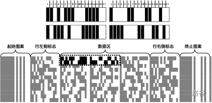 登机牌上的条形码,是 PDF417 码。PDF417 码的结构如下图所示。
