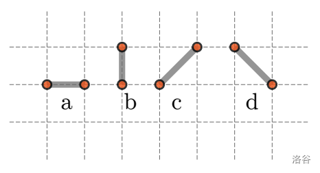 Mirko 最近读到了 *皮克定理(Pick’s theorem)*,它的内容如下:在坐标系中,如果我们画一个顶点坐标都是整数的多边形,设其面积为 $A$,多边形内部的整数坐标点数量为 $i$,位于多边形边界上的整数坐标点数量(包括顶点)为 $b$,那么总是有: $$A=i+\frac{b}{2}-1$$ 为了验证这个定理,Mirko 使用他的智能白板,用磁性棒制作了一个多边形。由于重力作用,夜间棒子可能已经滑落到了白板底部。现在,Mirko 想在使用所有找到的棒子的情况下,构建面积最小的多边形。Mirko 可以在白板上移动棒子,但不得旋转它们。他拥有如下棒子: - $a$ 根长度为 1 的水平棒, - $b$ 根长度为 1 的垂直棒, - $c$ 根长度为 $\sqrt{2}$ 的对角线棒,与 $x$ 轴正方向形成 $45\degree$ 的夹角, - $d$ 根长度为 $\sqrt{2}$ 的对角线棒,与 $x$ 轴正方向形成 $135\degree$ 的夹角。 ![](https://cdn.luogu.com.cn/upload/image_hosting/pybkh5lq.png) 图 2:上述多边形:$A = 8$, $i = 4$, $b = 10$。 ![](https://cdn.luogu.com.cn/upload/image_hosting/sgjajui8.png) 图 3:Mirko 所拥有的棒子。 请确定可以构建的最小面积多边形,使得所有棒子都被使用。可以假设输入数据保证至少能构建一个多边形。 如果你使用所有给定棒子构建了一个有效多边形(不一定是最小面积的),也可以获得部分分数。更多细节请参见“评分”部分。