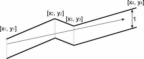 The pipeline consists of seamlessly welded together segments made of non-reflecting opaque materials. The upper points of the pipe contour are described by a sequence of points \[_x_ $ _{1} $ , _y_ $ _{1} $ \], \[_x_ $ _{2} $ , _y_ $ _{2} $ \], \[_x_ $ _{3} $ , _y_ $ _{3} $ \], ..., \[_x $ _{n} $_ , _y $ _{n} $_ \], where _x $ _{k} $_ < _x $ _{k} $_ $ _{+1} $ . The bottom points of the pipe contour are the same points with _y_-coordinate decreased by 1.