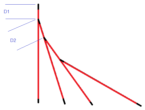 We have N sticks are lined up in a queue with different distances between them , and each stick is leaning on the left stick (look at figure) .