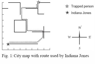 Documento sin tÃtuloIndiana Jones is in a deserted city, annihilated during a war. Roofs of all houses have been destroyed and only portions of walls are still standing. The ground is so full of mines that the only safe way to move around the city is walking over the remaining walls. The mission of our hero is to save a person who is trapped in the city. In order to move between two walls which are not connected Indiana Jones thought of taking with him a wooden board which he could place between the two walls and then cross from one to the other.