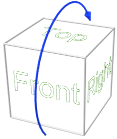 **Rotation of type Y:** Front and rear sides remain still, and the cube turns toward right.