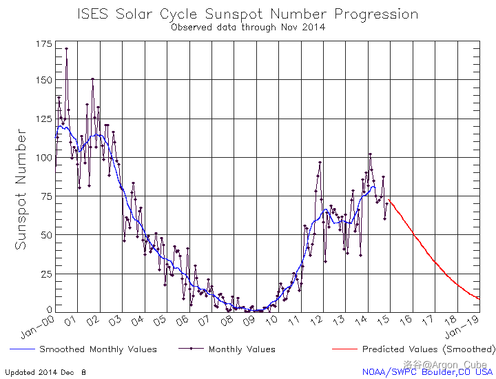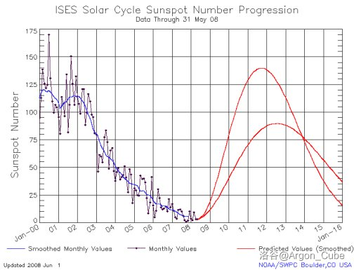 [太阳活动周期](http://en.wikipedia.org/wiki/Solar_cycle)的预测对多个机构和行业团体非常重要,因为它能直接影响低地球轨道卫星的寿命。这是由于卫星受到的空气阻力与太阳活动周期密切相关 \[...\]。[(NOAA)](http://www.swpc.noaa.gov/products/solar-cycle-progression)
