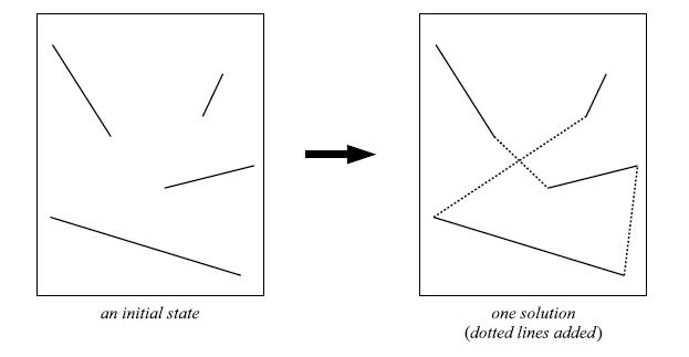 Your dear son Arnie is addicted to a puzzle named _Connect Line Segments_.