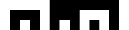 在完成这些幻灯片后,Peter 开始变换他所准备的图像。他为图像中封闭的区域交替涂上黑白色,其中最外面的区域均涂为黑色。对于上述例子,颜色填充的结果如下: