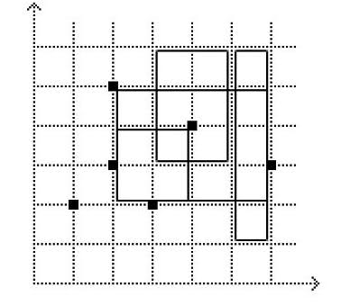 The next P lines contain four integers each X1, Y1, X2 , Y2 (1 ≤ X1 < X2 ≤ 10^9, 1 ≤ Y1 < Y2 ≤ 10^9)