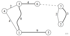 - 你不可以搭渡船去游览,因为你可由当前所在的岛 $2$ 到达岛 $4$。一个方法是:走 $(2-7)$ 桥,再搭你曾搭过的渡船由岛 $7$ 去岛 $6$,然后走 $(6-3)$ 桥,最后走 $(3-4)$ 桥。