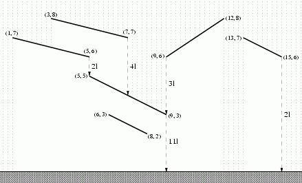当代建筑的屋顶可能非常复杂。如果我们取这样一个屋顶的垂直部分,它会产生许多倾斜的部分。下雨的时候,雨滴直接从天上掉到屋顶上。有些路段完全暴露在雨水中,但有些路段可能部分甚至完全被其他路段遮挡。以溪流形式从地面上的管段下端或可能落到其他管段上的所有水。特别是,如果一个水流落在一个段的末端,那么我们认为它是由这个段收集的。