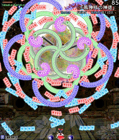 东方中,boss 的进攻方法通常来说有两个:非符和符卡。其中符卡是有立绘的,也有一个名称在屏幕右上角,而非符没有。