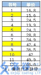 有几位同学要去买书,书的详细信息见表(包括书号、单价)。先输入一个正整数n,表示有n位同学要去买书;后面的n行每行开始为一个正整数m,代表这位同学要买的书的种类数目,后面跟着2m个数,每两个数代表所要购买的书号、数量,输出这几名同学各自买书所需的费用和总费用(若书缺货,则无法购买)。