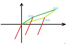 第3个向量可以从原点和第一个子节点加入树中,又可以产生 $2$ 个方案(图中红色部分);(注:不能添加至点 $(6,2)$,这样会使得叶子节点发生变化,从而使最大高度不符题意)