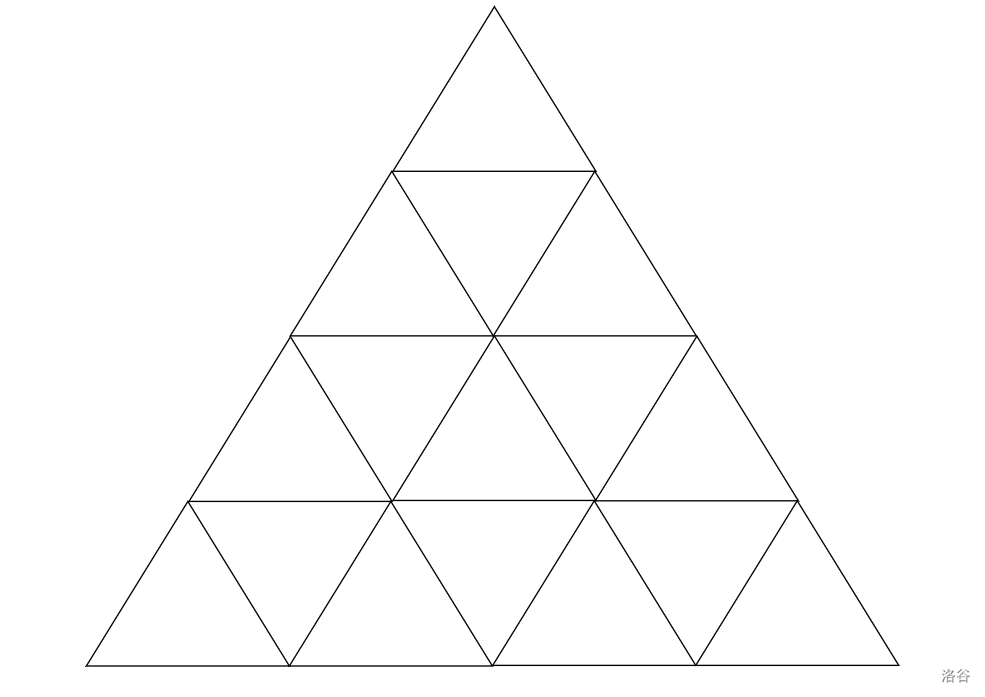 下图是一个 $n = 4$ 的三角形晶格实例: