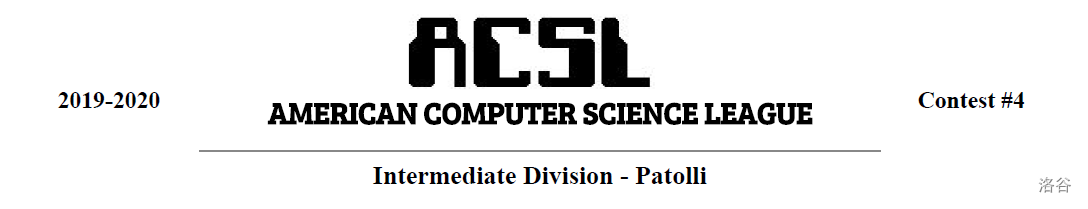 本题来自 [ACSL](http://www.acsl.org/) 系列比赛2019-2020年的第四轮编程试题。