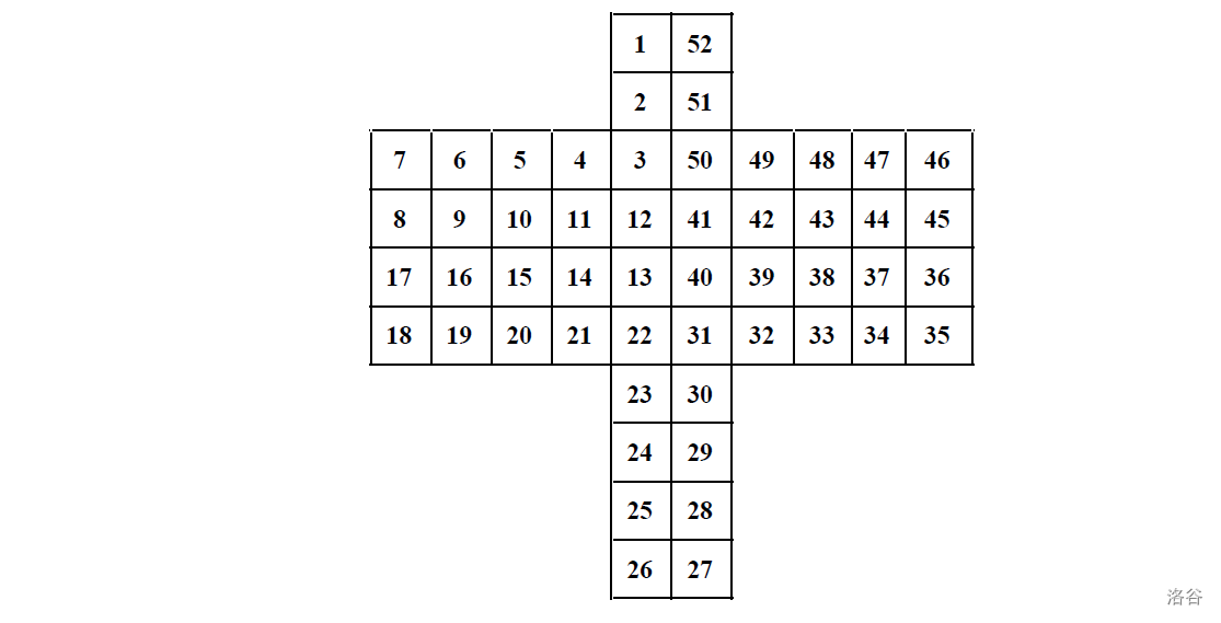 输出有一行,为按照升序排序好的整数,表示上述骰子投完后我方在棋盘上的棋子的位置(以格子序号输出)。