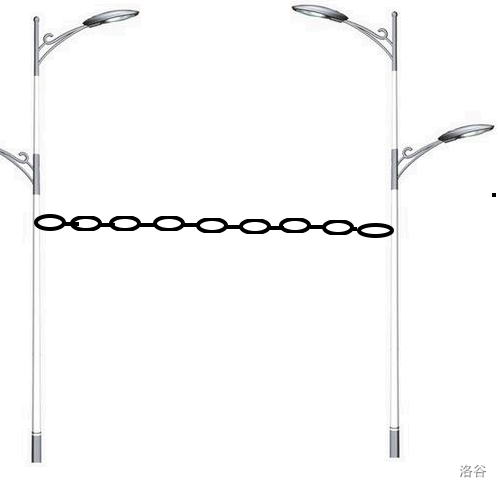 他本想用路灯阿给指导,可是他突然发现每两栈路灯之间都有一根铁链连接.于是他打算用铁链来阿掉给指导.