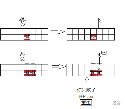 MC最最最简单的陷阱是什么?当然是由一个压力板和一个TNT组成的地雷呀。僵尸会被炸飞,而玩家可以越过。但是缈邈技术很菜,他无法跳过超过两个的区域。如果两个TNT并列在一起那么缈邈就无法跳过(如图)。 ![](https://cdn.luogu.com.cn/upload/image_hosting/imcrwlhz.png) 另外,缈邈是可以跳过斜对角的。现在给出地雷阵的俯瞰图,判断缈邈的地雷阵是否有效。僵尸可以上下左右移动一格。