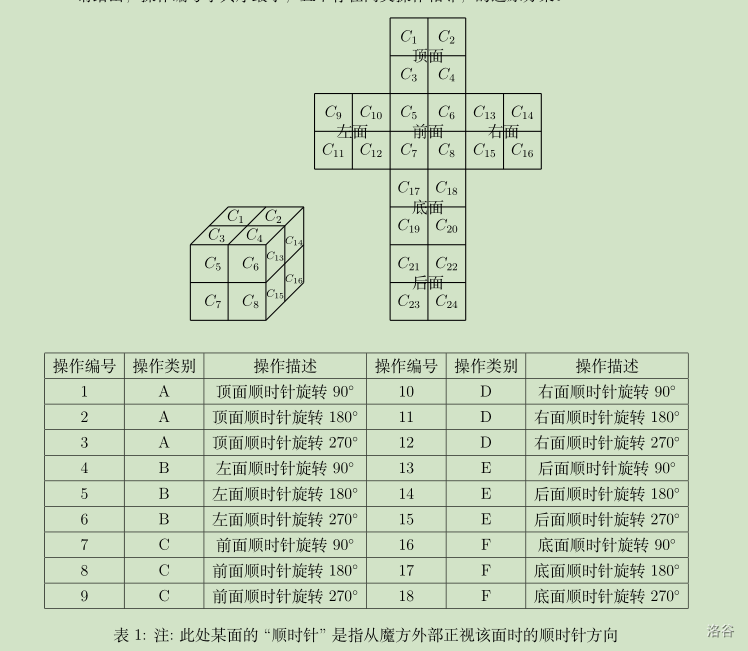 接下来 $24$ 个整数,按上图的顺序依次给出 $C_i ,C_i \in [1,2,3,4,5,6 ]。$