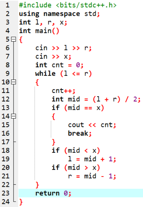 显然选择不同的数,上面程序的输出可能不同,请你看看l~r中有几个数可以得到最大的输出。