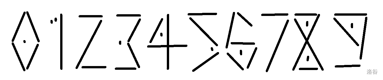 小猫走在沙滩上时,发现沙滩上有一些大木棍和小石子,于是它使用这些大木棍和小石子按如下方式摆成了一些数字: ![](https://cdn.luogu.com.cn/upload/image_hosting/zrpbg0hu.png) 图中的长条代表大木棍,点代表小石子。 现在,小猫告诉你它捡到的小石子和大木棍数量,它想知道能用这些小石子和大木棍拼出的 **最小** 和 **最大** 数字。 由于小猫只喜欢拼正整数,因此小猫拼出需要得到的数字不能是零,并且不能含有前导零;而且,小猫不会拼出太大的数字,所以当最大值或最小值在 $10^9$ 中没有答案时,小猫想让你输出 ```-1```。