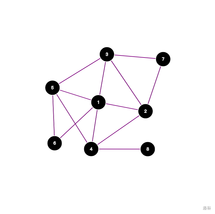 接下来 $m$ 行,每行两个正整数 $u, v$,表示星星 $u$ 和星星 $v$ 之间有一条链接。