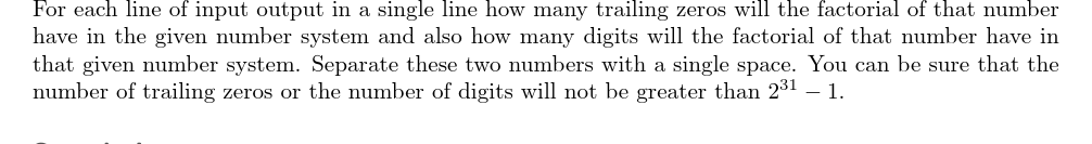 ![](https://cdn.luogu.com.cn/upload/vjudge_pic/UVA10061/3018097b406e24bfba046f696d8cbc2479ade486.png)