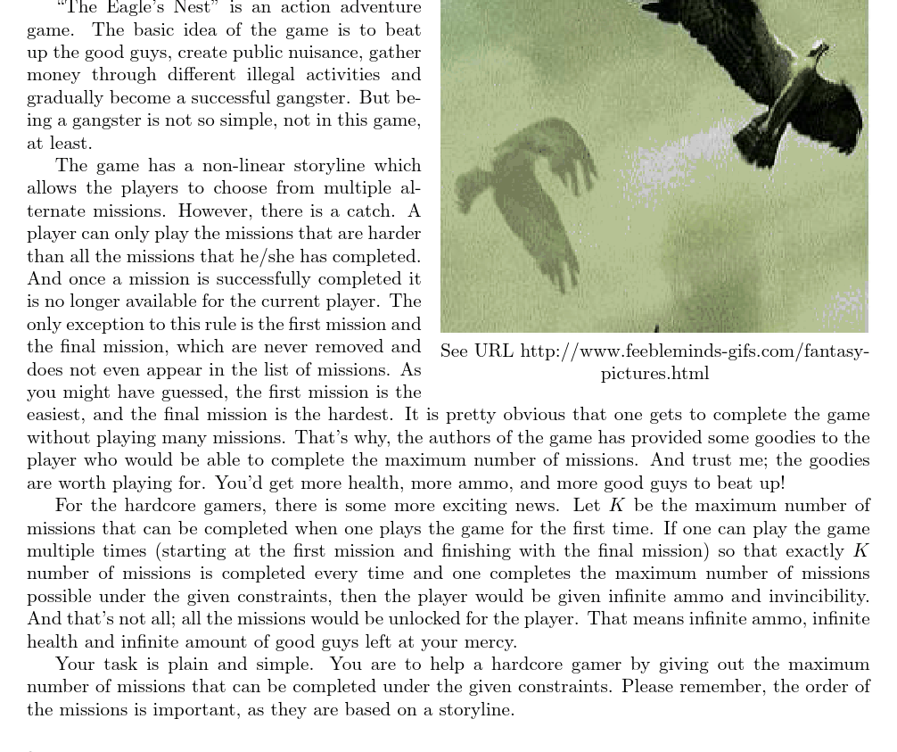 UVA10546 The Eagle's Nest