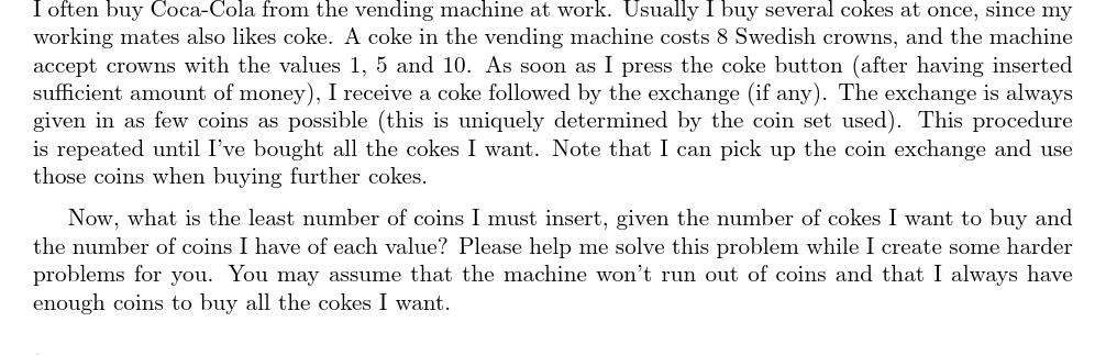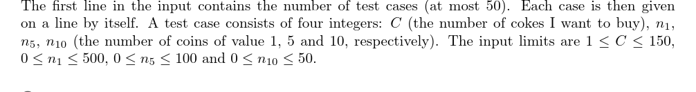 UVA10626 Buying Coke