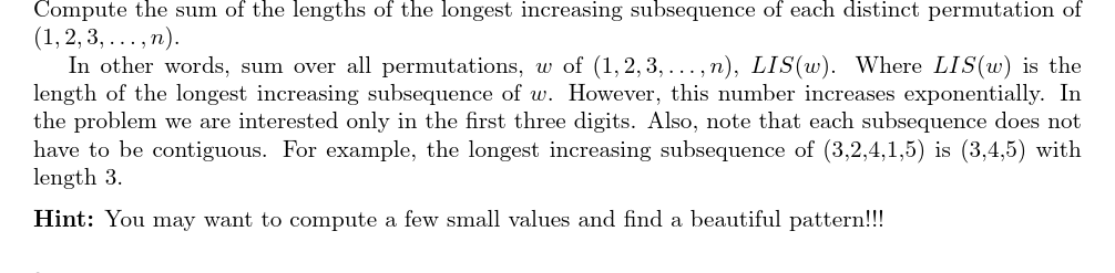 UVA11272 Summing the Lengths of the Longest Increasing Subsequence of Permutations