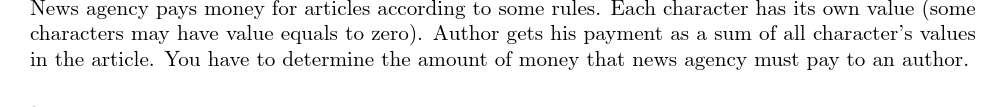 UVA11340 Newspaper