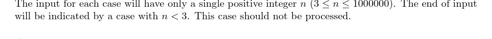 每行输入包含一个数字$n(3 \leq n \leq 10^6)$,含义如上所示。