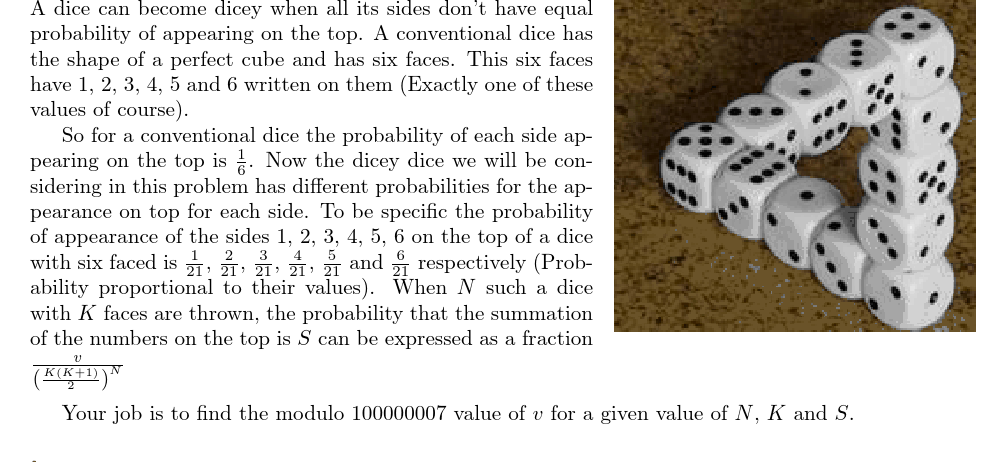 UVA11433 The Dicey Dice