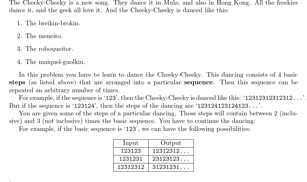 UVA11452 Dancing the Cheeky-Cheeky