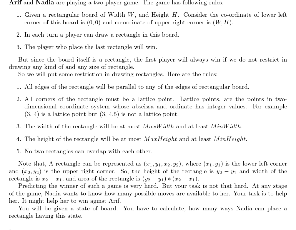 UVA11477 Game of Rectangles
