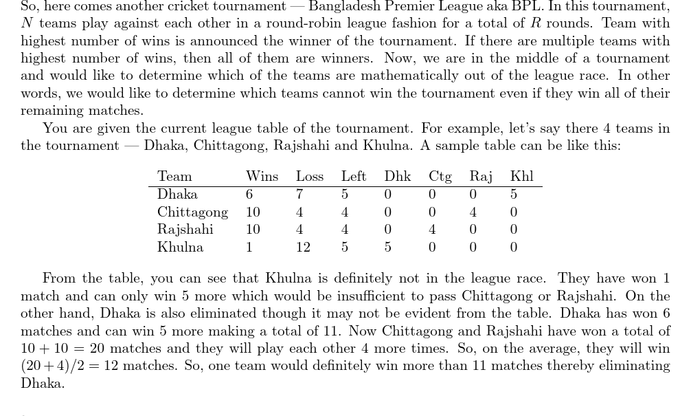 UVA11642 Bangladesh Premier League