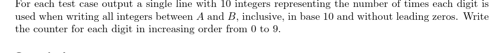 UVA12241 Digits Count