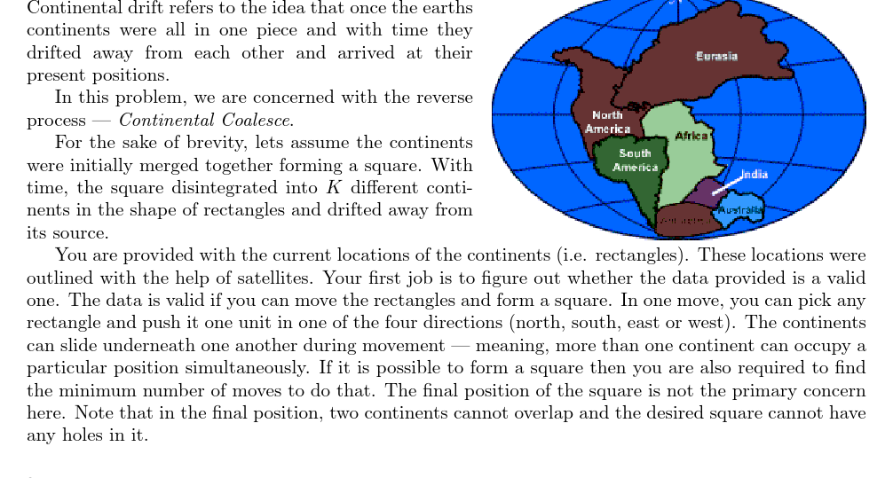UVA12352 Coalescing Continents