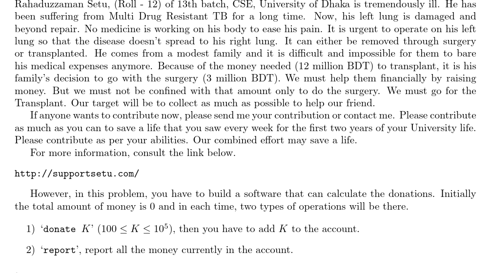UVA12403 Save Setu