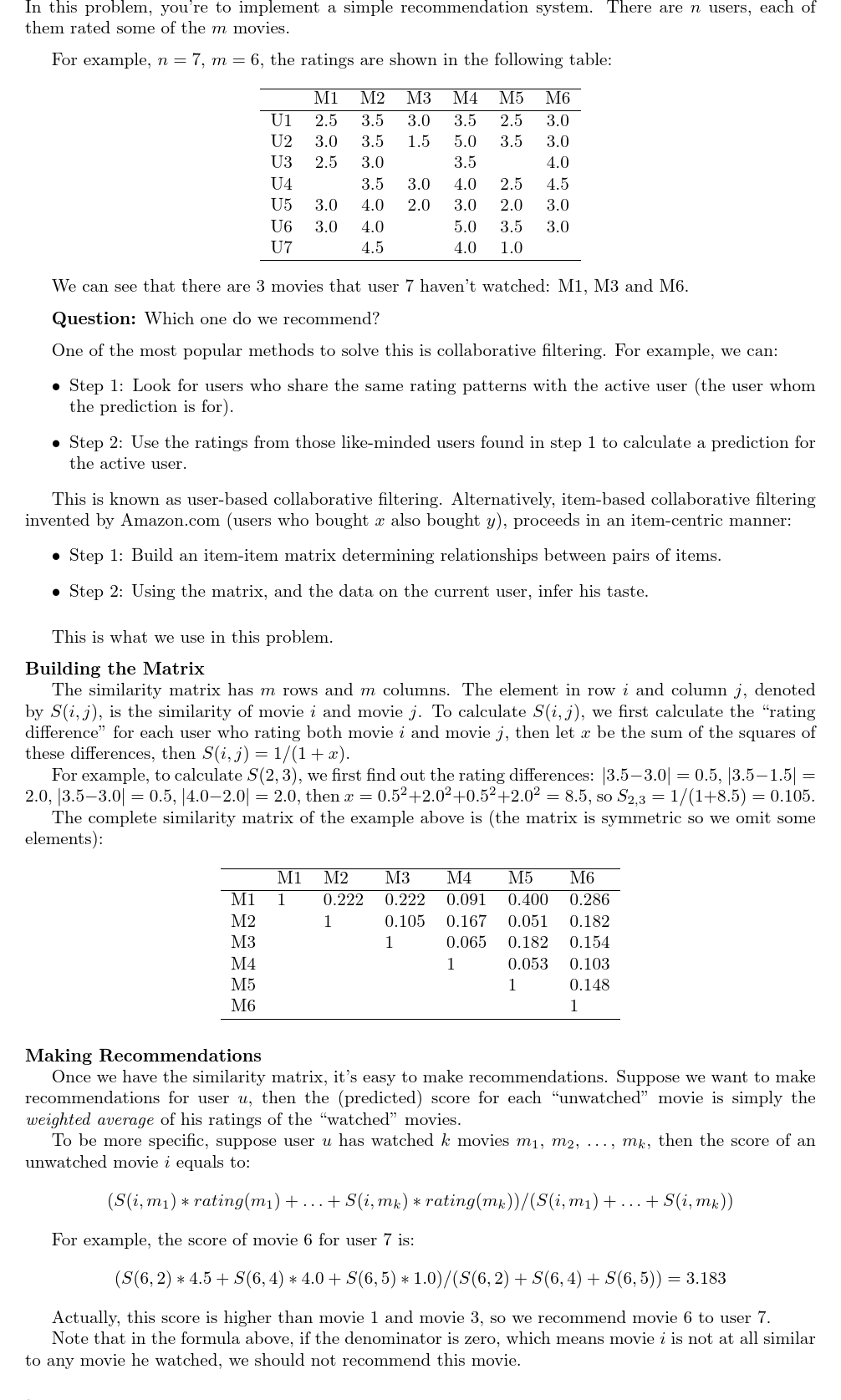 UVA12420 Item-Based Recommendation