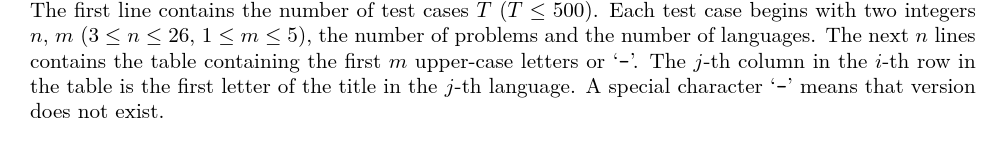 [problemUrl]: https://uva.onlinejudge.org/index.php?option=com_onlinejudge&Itemid=8&category=441&page=show_problem&problem=4015 [PDF](https://uva.onlinejudge.org/external/125/p12570.pdf) ![](https://cdn.luogu.com.cn/upload/vjudge_pic/UVA12570/fdc31066197848eb12e006c56eecd72c14f345fb.png)