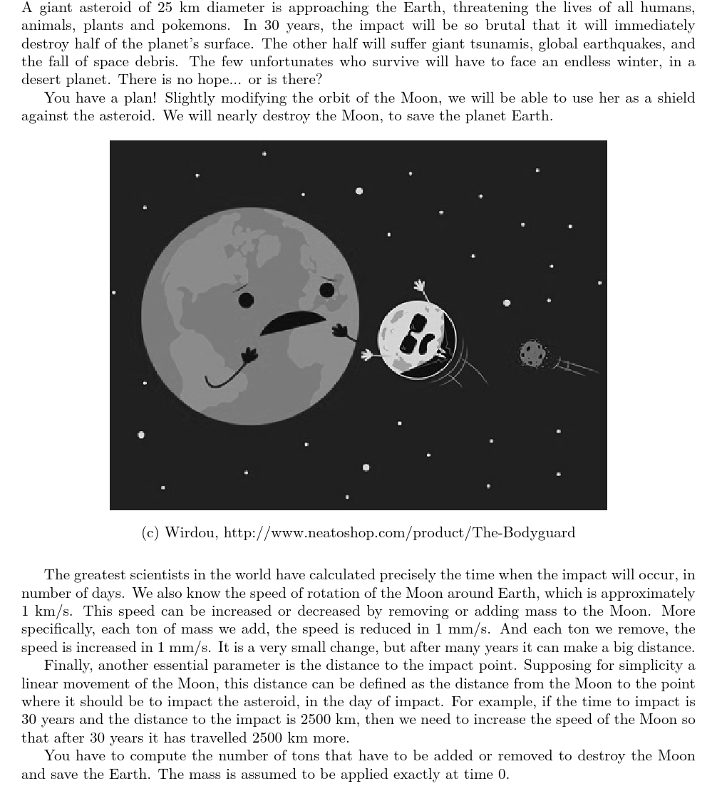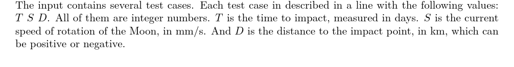 UVA13142 Destroy the Moon to Save the Earth