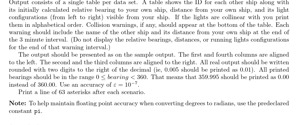 UVA203 Running Lights Visibility Calculator