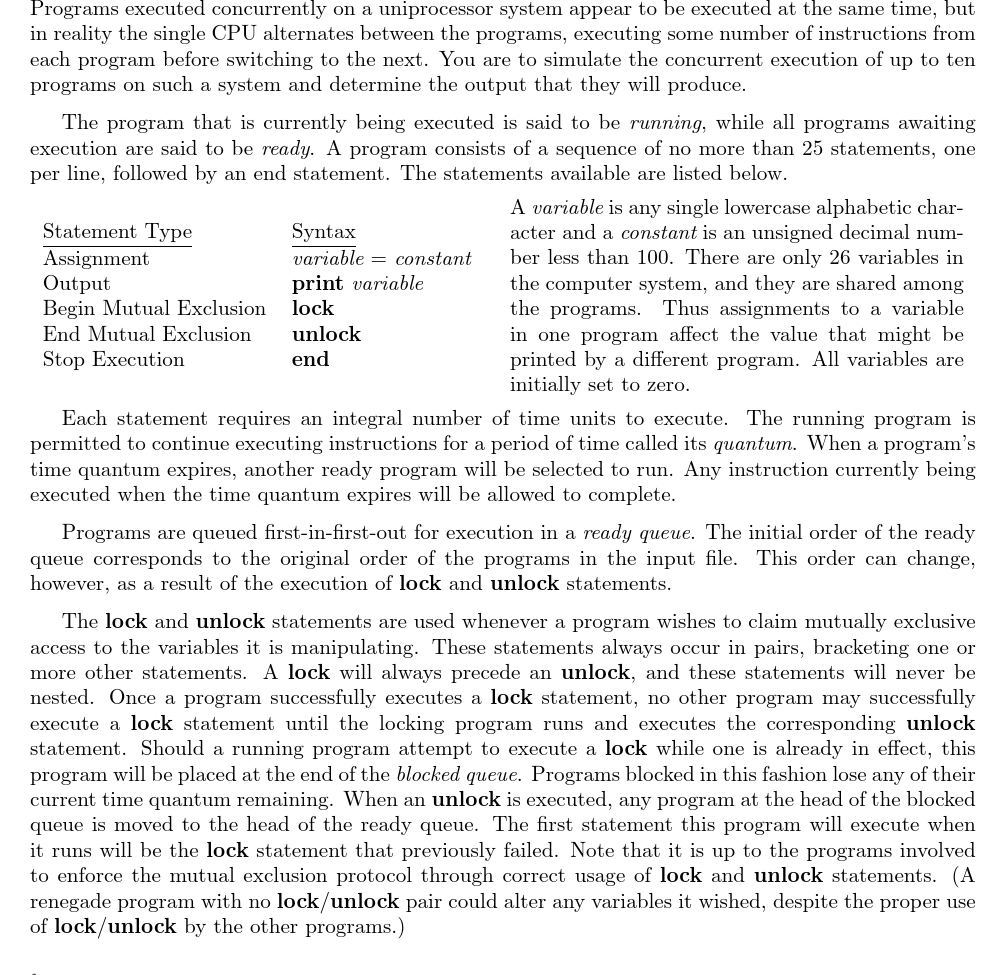 UVA210 并行程序模拟 Concurrency Simulator