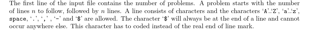[problemUrl]: https://uva.onlinejudge.org/index.php?option=com_onlinejudge&Itemid=8&category=4&page=show_problem&problem=219